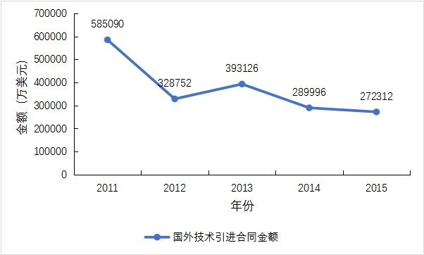圖5??2011-2015年國外技術(shù)引進合同金額