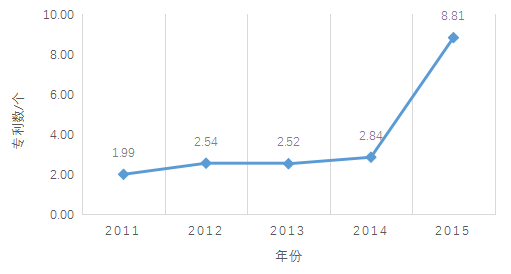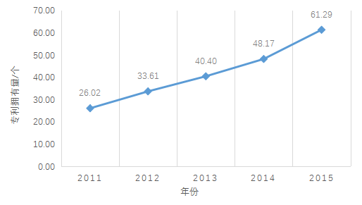圖3 ?2011-2015年每萬人發(fā)明專利擁有量