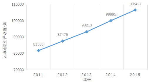圖4 ?2011-2015年北京人均地區(qū)生產總值