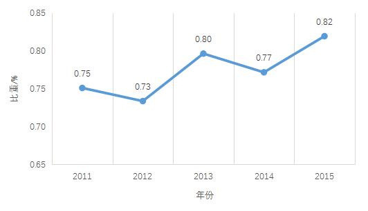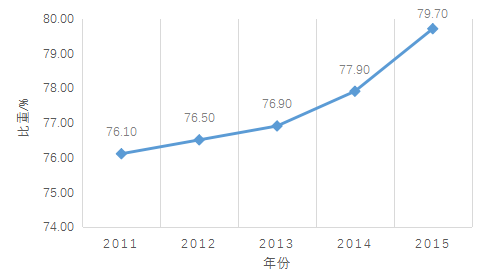 圖5 ?2011-2015年北京第三產業(yè)增加值占地區(qū)生產總值比重