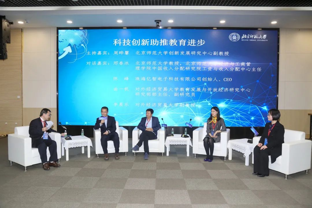 在圓桌討論環(huán)節(jié),北京師范大學經(jīng)濟與工商管理學院教授、中國收入分配研究院工資與收入分配中心主任邢春冰表示,教育生產(chǎn)函數(shù)的投入包括設(shè)備、師資以及同學關(guān)系等各種要素,厘清技術(shù)進步對教育影響的前提是對教育過程的充分認知。邢教授進一步提到,技術(shù)進步對教育市場影響是巨大的。一方面,它降低了教育資源的搜尋匹配成本,改變了教育市場的供給和需求。另一方面,它會放大教師的差別、催生明星教師,產(chǎn)生強者恒強的馬太效應(yīng)。珠海億智電子科技有限公司創(chuàng)始人兼CEO陳峰強調(diào),人工智能本質(zhì)上是一種方法,核心的三個要素是數(shù)據(jù)、算力與算法。人工智能可以加速信息傳遞的質(zhì)量與效率,它與教育結(jié)合可以使教育更加精準、更具個性、更有趣味。對外經(jīng)濟貿(mào)易大學教育發(fā)展與開放經(jīng)濟研究中心研究部主任、副研究員曲一帆表示,區(qū)塊鏈技術(shù)提高了教育記錄的安全性、可靠性與可信性,可使教育生態(tài)更多元、更開放,教育治理更安全、更互聯(lián),教育評價更動態(tài)、更精準,教師發(fā)展更專業(yè)化。同時,也可以促進終身學習的可追溯性,有助于保護知識產(chǎn)權(quán)。對外經(jīng)濟貿(mào)易大學副教授李晨樂認為,大數(shù)據(jù)技術(shù)可助力獲取和度量學生非認知能力、非結(jié)構(gòu)化的相關(guān)數(shù)據(jù),包括學生品格、溝通協(xié)調(diào)能力等對未來經(jīng)濟活動產(chǎn)生影響的軟實力。同時,李晨樂副教授也提醒道,技術(shù)差異也有可能造成巨大的數(shù)字鴻溝。他指出,線上教育雖可突破地理限制,但需要軟硬件的支持,這可能會擴大農(nóng)村和城市學校的差異。?