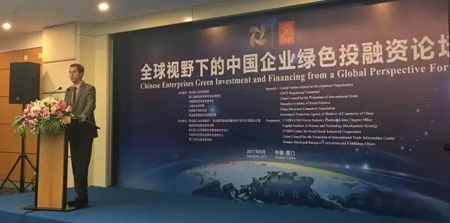 2017年9月19日,“全球視野下的中國企業(yè)綠色投融資論壇”在廈門國際會展中心舉行。此次論壇由聯(lián)合國工業(yè)發(fā)展組織、首都科技發(fā)展戰(zhàn)略研究院、UNIDO-UNEP綠色產(chǎn)業(yè)平臺中國辦公室以及工發(fā)組織南南合作中心共同舉辦。
