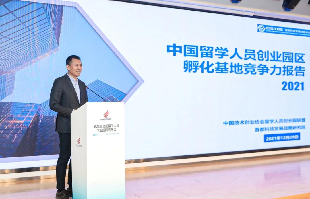 2021年12月29日,第22屆全國(guó)留學(xué)人員創(chuàng)業(yè)園網(wǎng)絡(luò)年會(huì)在北京舉行。會(huì)上,首都科技發(fā)展戰(zhàn)略研究院執(zhí)行院長(zhǎng)顏振軍教授發(fā)布了《中國(guó)留學(xué)人員創(chuàng)業(yè)園區(qū)孵化基地競(jìng)爭(zhēng)力報(bào)告(2021)》(以下簡(jiǎn)稱(chēng)“報(bào)告”)。報(bào)告由中國(guó)技術(shù)創(chuàng)業(yè)協(xié)會(huì)留學(xué)人員創(chuàng)業(yè)園聯(lián)盟與首都科技發(fā)展戰(zhàn)略研究院聯(lián)合編制,2021年是兩家單位第二次共同發(fā)布此項(xiàng)報(bào)告。