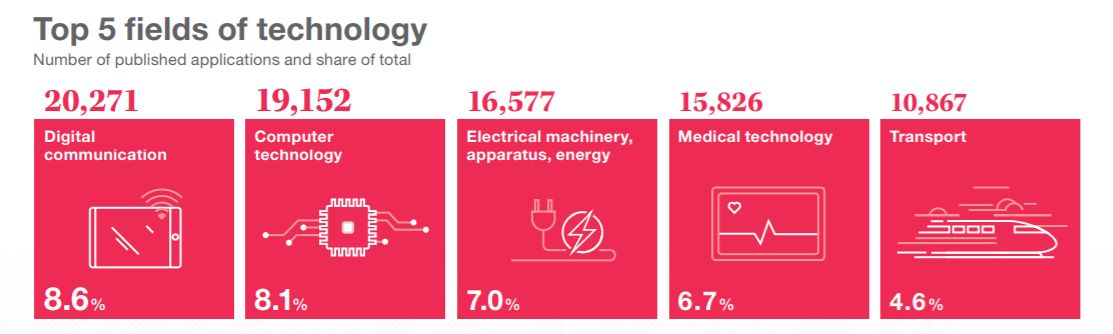 圖4:電子通信成為專利數(shù)量最多的領(lǐng)域(來源:WIPO)