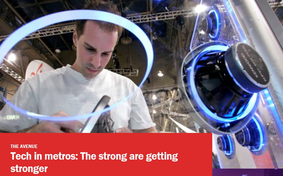 ????????2017年3月8日,美國著名智庫布魯金斯學會發(fā)布了Mark Muro等人的文章《Tech in metros: The strong are getting stronger》,文章展示了高科技產(chǎn)業(yè)在美國各大城市的分布,指出了大城市的高科技發(fā)展呈現(xiàn)強者愈強的狀況,對這種狀況原因進行分析,并對未來高科技產(chǎn)業(yè)在各城市的發(fā)展提出自己的見解。