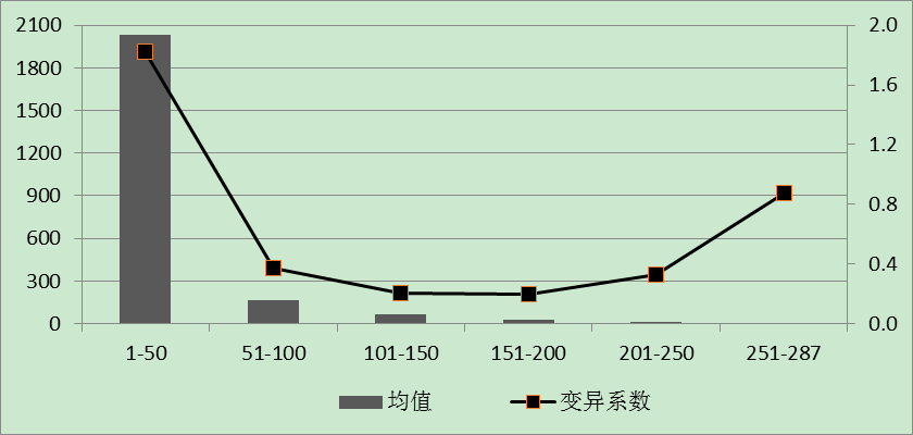 中國地級以上城市之間的科技創(chuàng)新發(fā)展差異懸殊,目前已形成以省會城市和副省級以上城市為龍頭和東中西部城市創(chuàng)新發(fā)展梯度分布的基本格局。從城市科技創(chuàng)新發(fā)展指數(shù)綜合排名情況來看,在區(qū)域之間,東部地區(qū)城市科技創(chuàng)新發(fā)展水平整體優(yōu)于西部、東北部和中部地區(qū)城市,沿海省份城市科技創(chuàng)新發(fā)展水平整體優(yōu)于內(nèi)陸省份城市;在同一地區(qū)、同一省份內(nèi)部也存在很大差異,省會城市、副省級以上城市等區(qū)域中心城市科技創(chuàng)新發(fā)展水平往往大大高于其他地級城市。從發(fā)明專利授權(quán)量看,287個樣本城市的發(fā)明專利授權(quán)量平均值為402件,但標(biāo)準(zhǔn)差達(dá)1708,變異系數(shù)為4.2。將樣本城市按發(fā)明專利授權(quán)量排名進(jìn)行分組后,可以發(fā)現(xiàn),排名前50位的城市平均發(fā)明專利授權(quán)量約為第51至100位城市平均值的12倍,中國地級以上城市的科技創(chuàng)新發(fā)展差異非常懸殊。