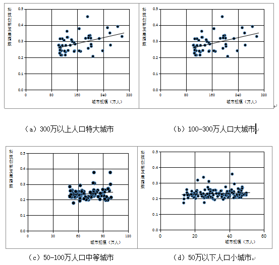 圖11 ?城市科技創(chuàng)新發(fā)展指數(shù)與城市規(guī)模關(guān)系