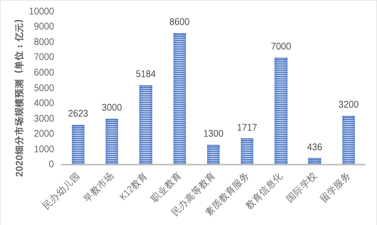 ▲中國教育服務(wù)產(chǎn)業(yè)細(xì)分領(lǐng)域2020年市場規(guī)模預(yù)測