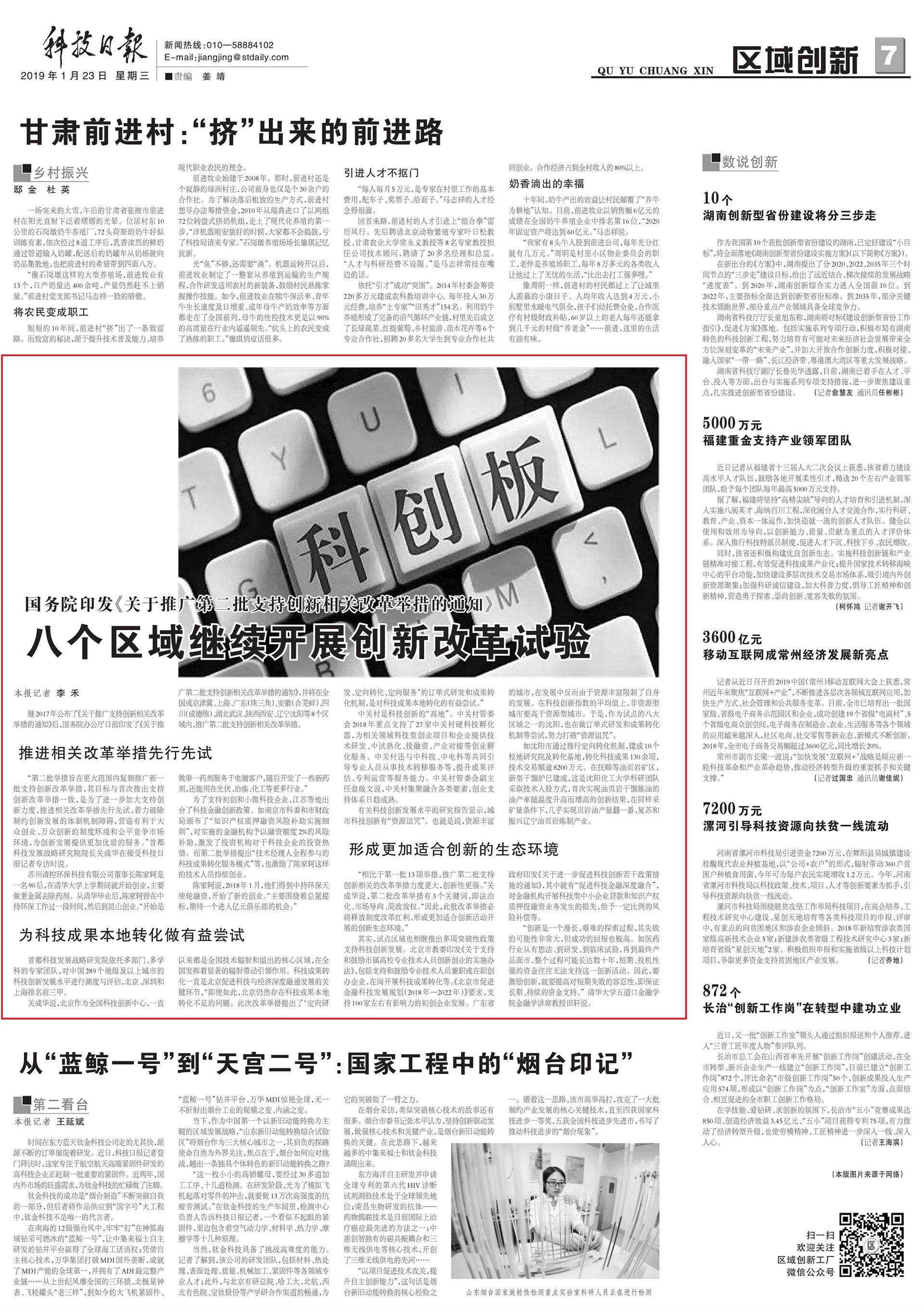 ? ? ? 其實(shí),試點(diǎn)區(qū)域也相繼推出多項(xiàng)突破性政策支持科技創(chuàng)新發(fā)展。北京市教委印發(fā)《關(guān)于支持和鼓勵(lì)市屬高校專業(yè)技術(shù)人員創(chuàng)新創(chuàng)業(yè)的實(shí)施辦法》,包括支持和鼓勵(lì)專業(yè)技術(shù)人員兼職或在職創(chuàng)辦企業(yè),在崗開展科技成果轉(zhuǎn)化等。《北京市促進(jìn)金融科技發(fā)展規(guī)劃(2018年—2022年)》要求,支持100家左右有影響力的初創(chuàng)企業(yè)發(fā)展。廣東省政府印發(fā)《關(guān)于進(jìn)一步促進(jìn)科技創(chuàng)新若干政策措施的通知》,其中就有“促進(jìn)科技金融深度融合”,對(duì)金融機(jī)構(gòu)開展科技型中小企業(yè)貸款和知識(shí)產(chǎn)權(quán)質(zhì)押投融資業(yè)務(wù)發(fā)生的損失,給予一定比例的風(fēng)險(xiǎn)補(bǔ)償?shù)取?