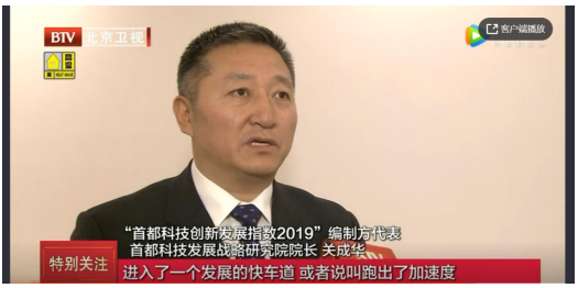 ???????會(huì)后,首都科技發(fā)展戰(zhàn)略研究院院長關(guān)成華教授接受北京電視臺(tái)(BTV)采訪,結(jié)合首都科技創(chuàng)新發(fā)展指數(shù)2019的研究,解讀北京科技創(chuàng)新工作新特點(diǎn)。