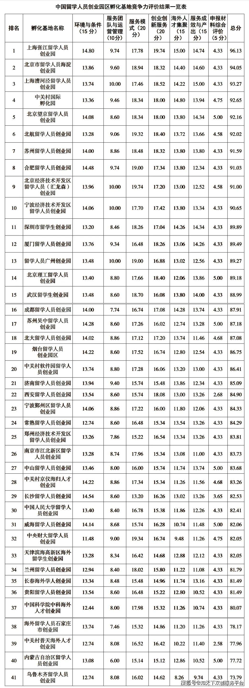 報(bào)告顯示,排名前十的孵化基地分別為上海張江留學(xué)人員創(chuàng)業(yè)園、北京市留學(xué)人員海淀創(chuàng)業(yè)園、上海漕河涇留學(xué)人員創(chuàng)業(yè)園、中關(guān)村國(guó)際孵化園、北京望京留學(xué)人員創(chuàng)業(yè)園、北航留學(xué)人員創(chuàng)業(yè)園、蘇州留學(xué)人員創(chuàng)業(yè)園、合肥留學(xué)人員創(chuàng)業(yè)園、北京經(jīng)濟(jì)技術(shù)開發(fā)區(qū)留學(xué)人員(匯龍森)創(chuàng)業(yè)園、寧波經(jīng)濟(jì)技術(shù)開發(fā)區(qū)留學(xué)人員創(chuàng)業(yè)園。?