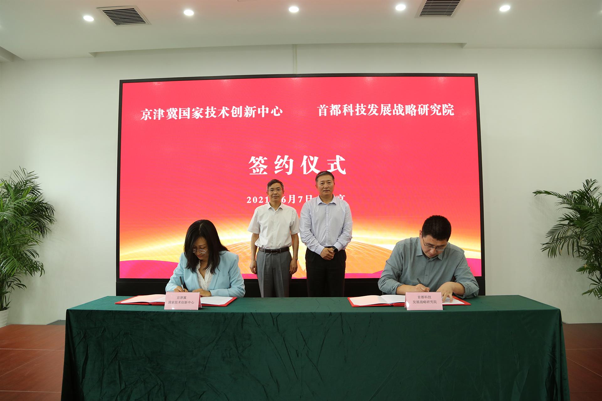? ? ? ?2021年6月7日,首都科技發(fā)展戰(zhàn)略研究院與京津冀國(guó)家技術(shù)創(chuàng)新中心在京舉行戰(zhàn)略合作簽約儀式。首都科技發(fā)展戰(zhàn)略研究院院長(zhǎng)關(guān)成華和京津冀國(guó)家技術(shù)創(chuàng)新中心主任王茤祥出席簽約儀式。