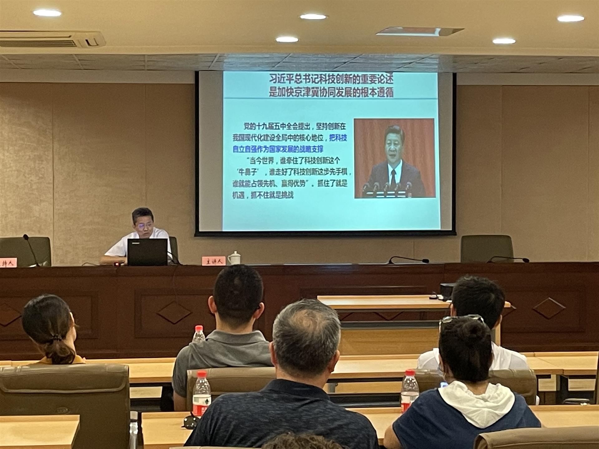 ? ? ? ?2021年6月11日,首都科技發(fā)展戰(zhàn)略研究院理事會秘書長余健,應(yīng)邀為天津市河北區(qū)“處級領(lǐng)導(dǎo)干部專題研修班”授課,并做以《搶抓世界科技革命和產(chǎn)業(yè)變革機遇加快京津冀協(xié)同發(fā)展》為主題的講座。