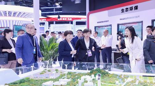 圖2? 北京市副市長、民建市委主委司馬紅蒞臨國能龍?jiān)喘h(huán)保有限公司展區(qū)指導(dǎo)