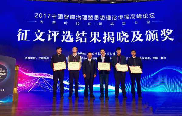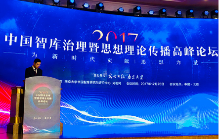 12月20日,由光明日?qǐng)?bào)社、南京大學(xué)聯(lián)合主辦的“2017中國(guó)智庫(kù)治理暨思想理論傳播高峰論壇”在北京召開(kāi),來(lái)自中央部委及各省市智庫(kù)管理部門(mén)、中國(guó)智庫(kù)索引來(lái)源智庫(kù)、智庫(kù)研究界、思想理論界的專(zhuān)家學(xué)者數(shù)百人參加論壇。