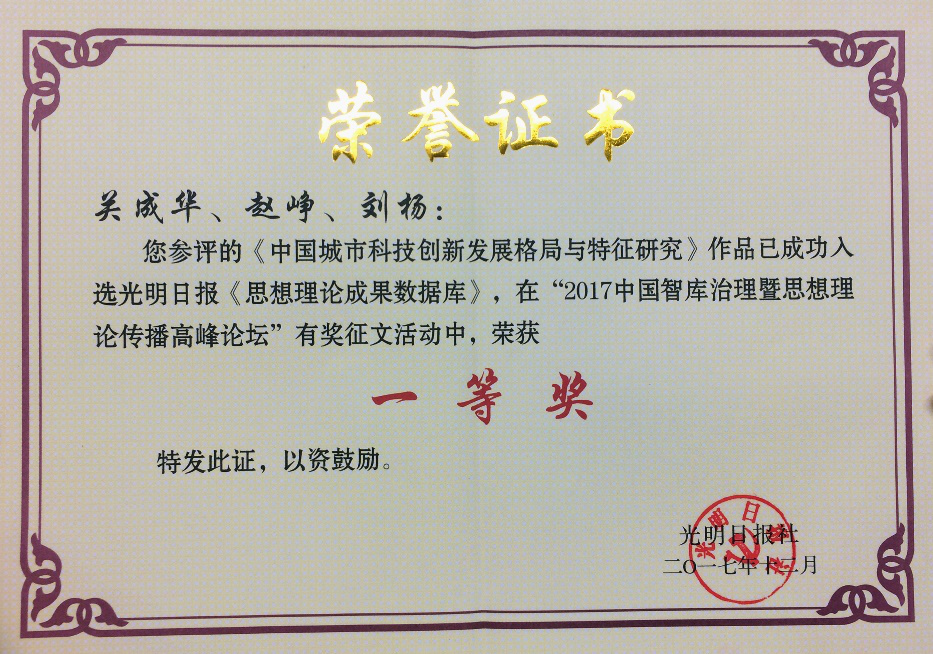 論壇還發(fā)布了以“為新時(shí)代貢獻(xiàn)思想力量”為主題的有獎(jiǎng)?wù)魑某晒J锥伎萍及l(fā)展戰(zhàn)略研究院參評(píng)的《中國(guó)城市科技創(chuàng)新發(fā)展格局與特征研究》論文榮獲“一等獎(jiǎng)”,并入選光明日?qǐng)?bào)《思想理論成果數(shù)據(jù)庫(kù)》。