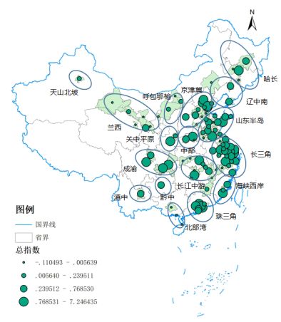 圖2 中國城市創(chuàng)孵指數(shù)排名TOP100城市集中地